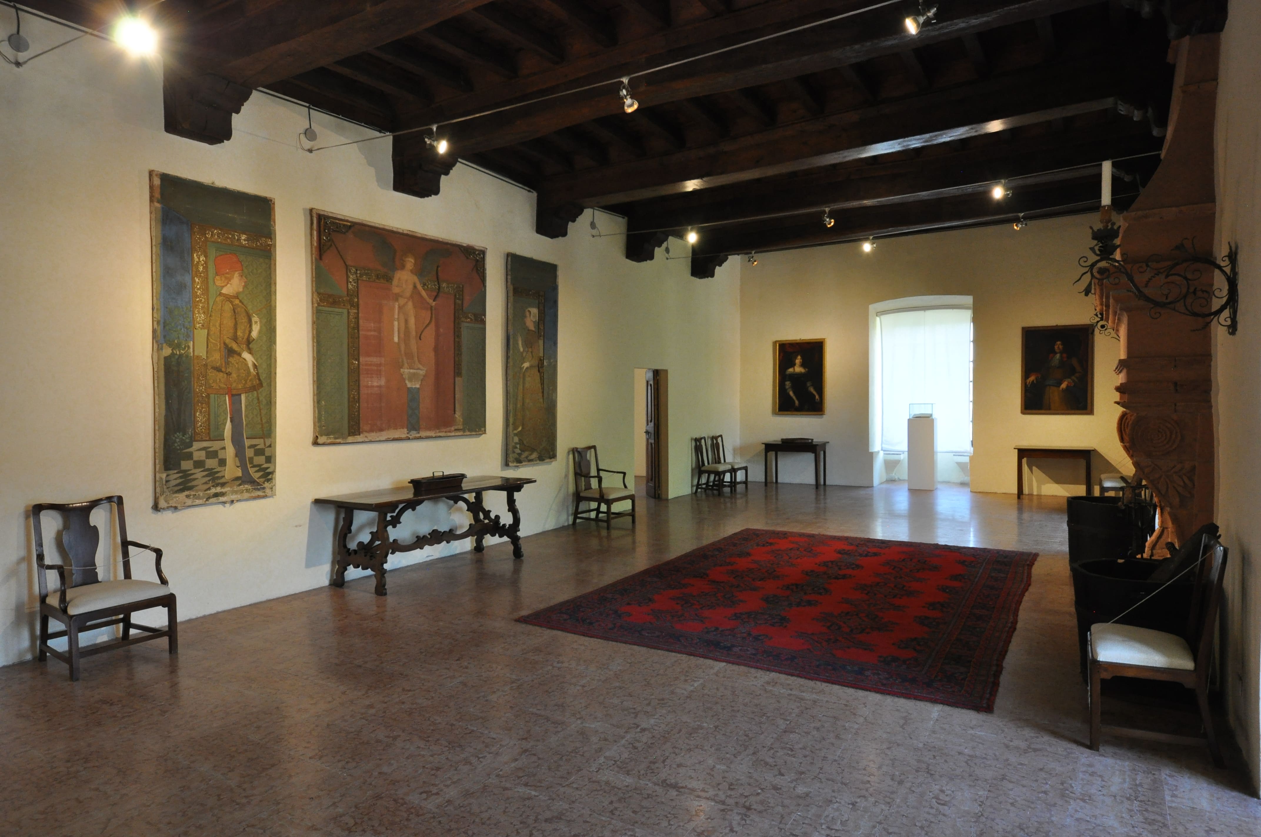 Piano terreno: Portico d'onore con stemmi dipinti (sec. XV); Sala di Griselda con ciclo pittorico ispirato alla Centesima novella del Decameron di Giovanni Boccaccio (copie dal sec. XV); tre ambienti con dipinti e arredi dei secc. XVI-XVIII: Sala dei Feudi, dei Paesaggi, dei Quattro Elementi; Torre del Mastio; Cantina del mastio con il Museo del Vino; Sala Rangoni con stucchi e dipinti (secc. XVI-XVII); Sale dei grandi tini; Sala degustazione dei distillati e aceto balsamico; Piano Nobile: